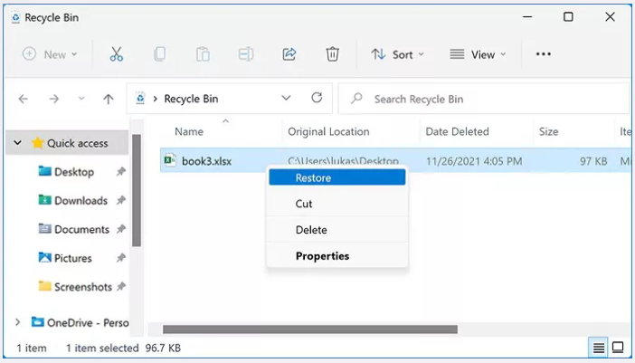 Recycle Bin is a popular place in the Windows operating system. When a file is deleted temporarily, it goes straight to the Recycle Bin. In that case, you have two options to retrieve your deleted Excel files. The first one is the use of shortcut keys, whereas manual restoration is the second process you can adopt.