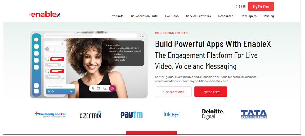 EnableX is another Agora alternative that can come in handy to build powerful apps. Although it does not offer many features like ZEGOCLOUD, MirrorFly, and Apphitect, it’ll provide you with video API, voice API, and SMS API to enhance your app’s communication system.