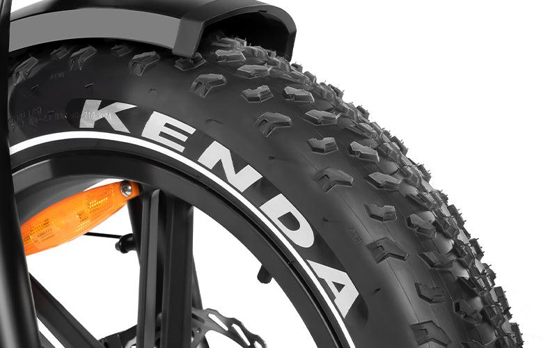 A6: The e-bike is outfitted with a suspension front fork and 20-inch fat tires, providing a stable and comfortable ride over a variety of terrains. These design elements help to enhance shock absorption and stability.